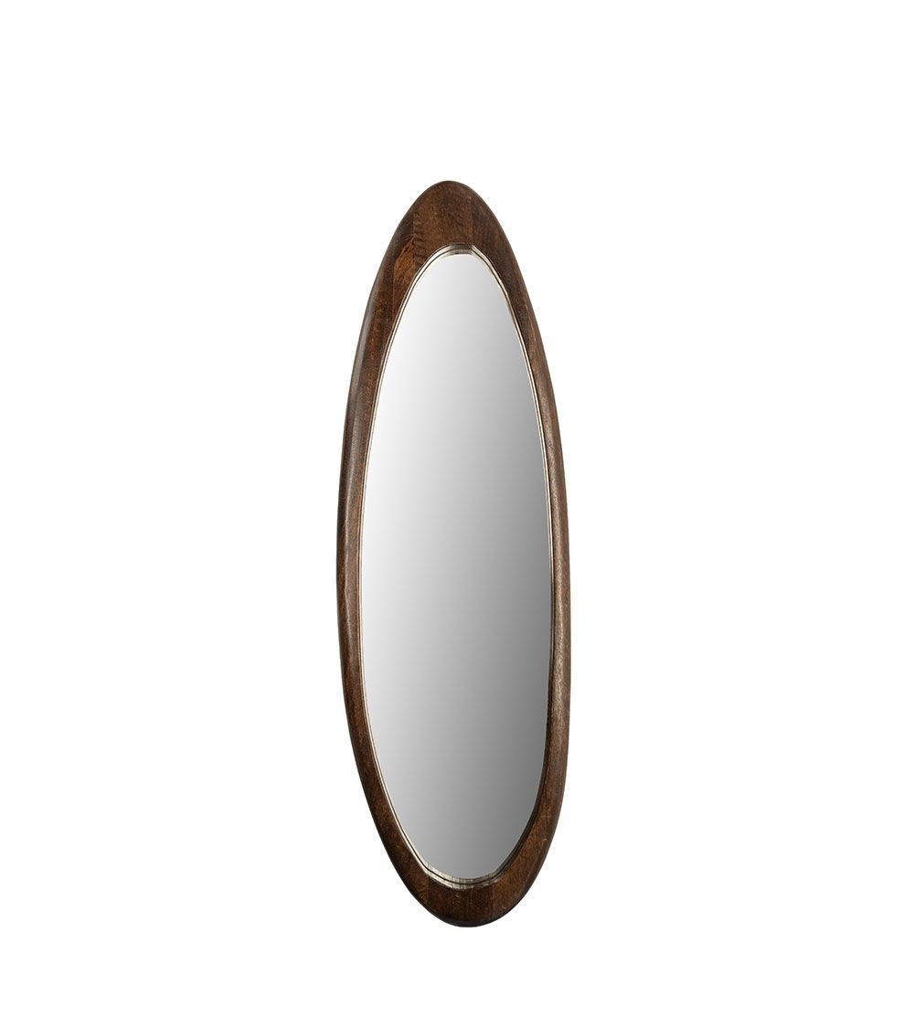 Adoptez l'élégance du design vintage avec le miroir ovale Nino, une pièce de 100 cm de haut au cadre en bois de manguier pour une touche douce et naturelle.