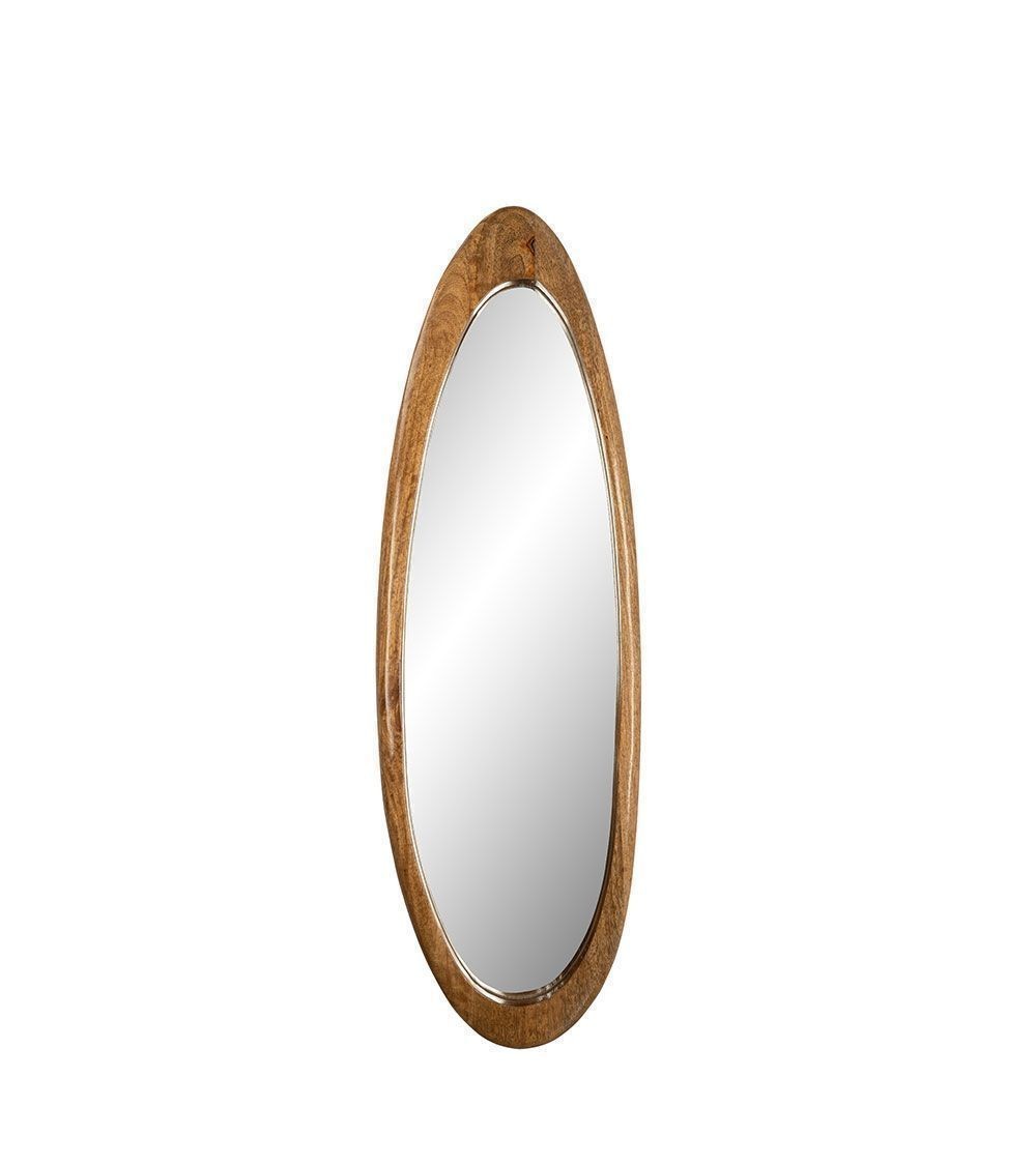 Adoptez l'élégance du design vintage avec le miroir ovale Nino, une pièce de 100 cm de haut au cadre en bois de manguier pour une touche douce et naturelle.