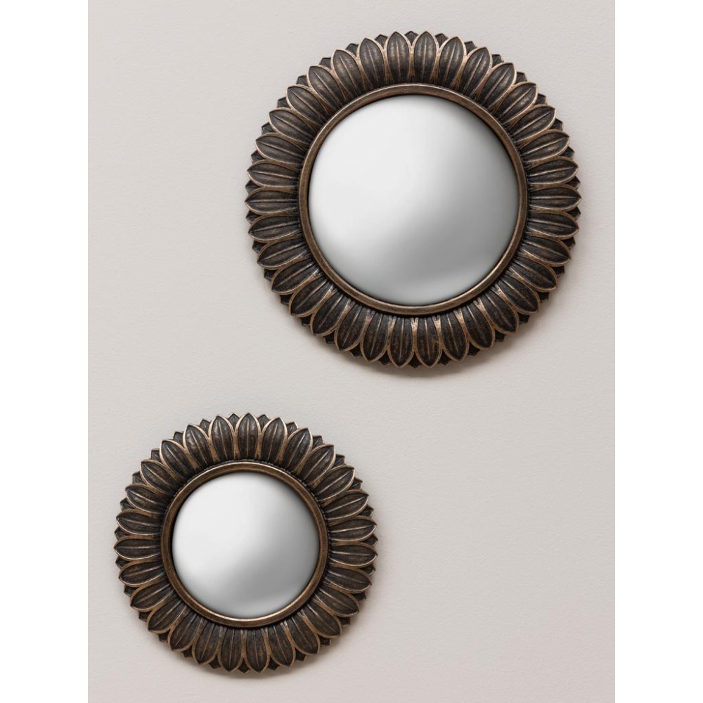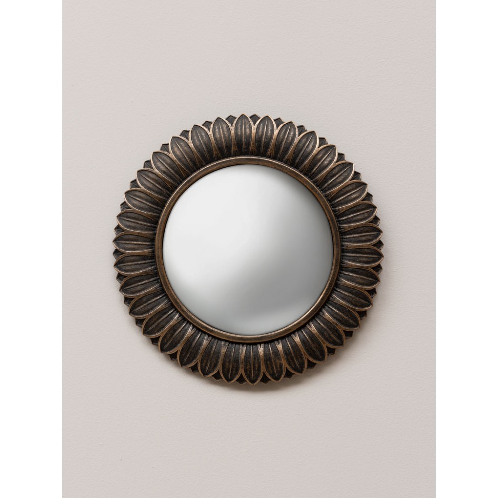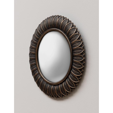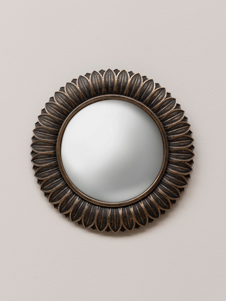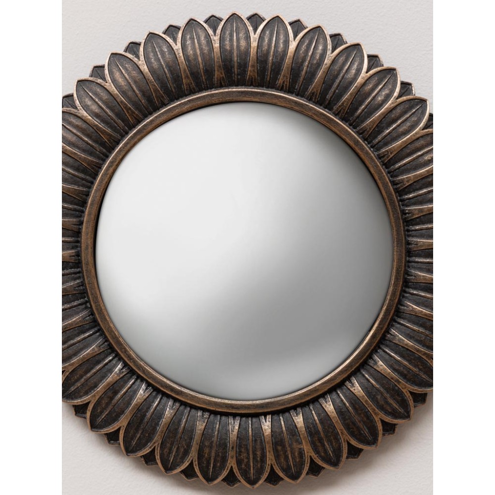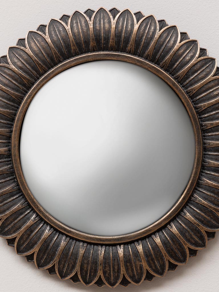 Miroir convexe feuilles bronze aspect vieilli