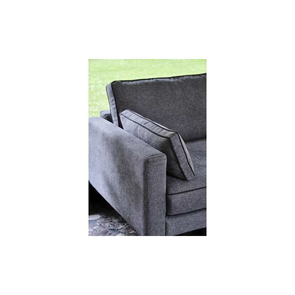 Couture : Surpiqûre plate sur la structure. Passepoil sur les coussins d’assise, de dos et de déco.
