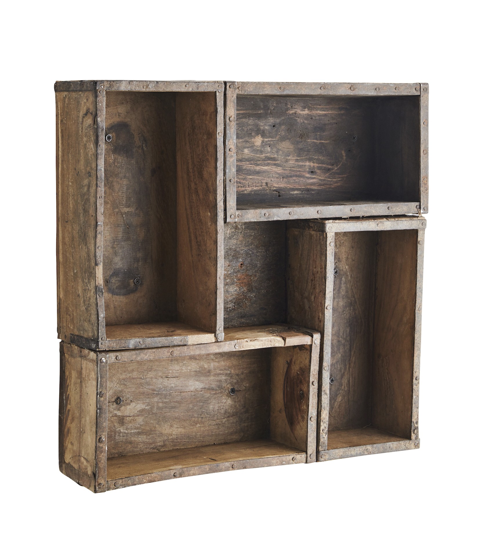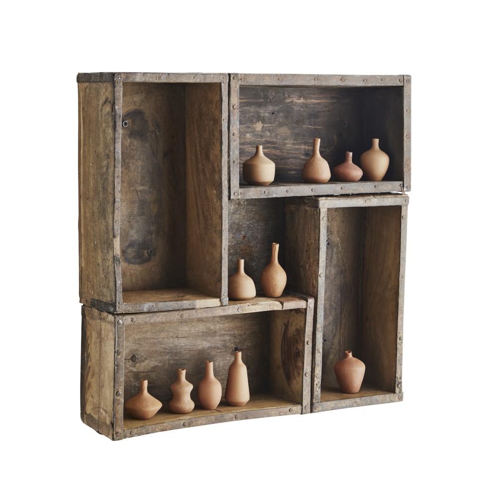 Etagère réalisée à partir d'anciens moules à briques.