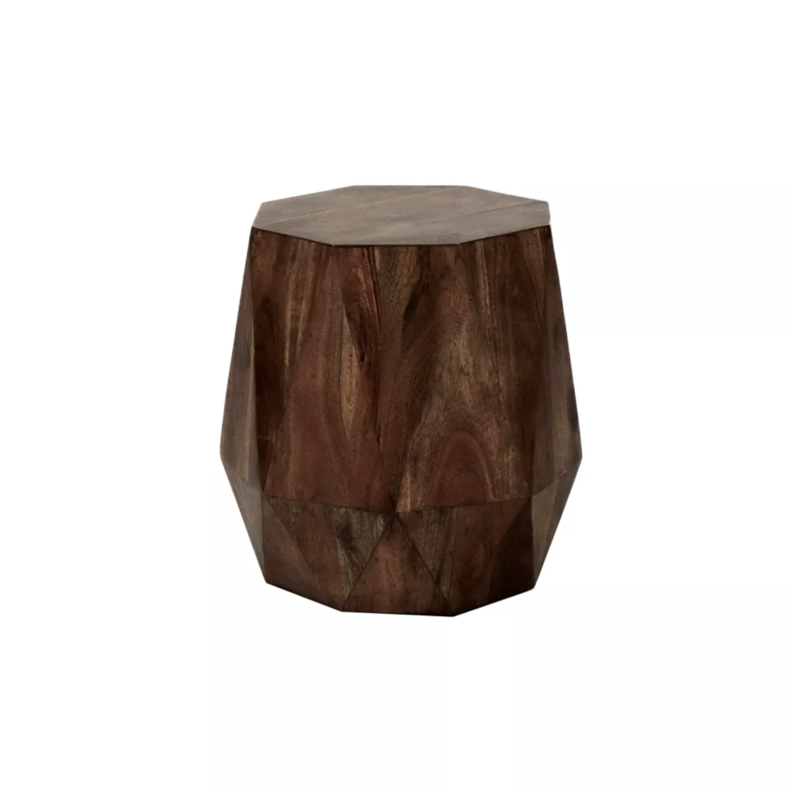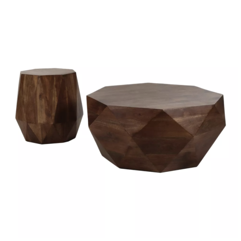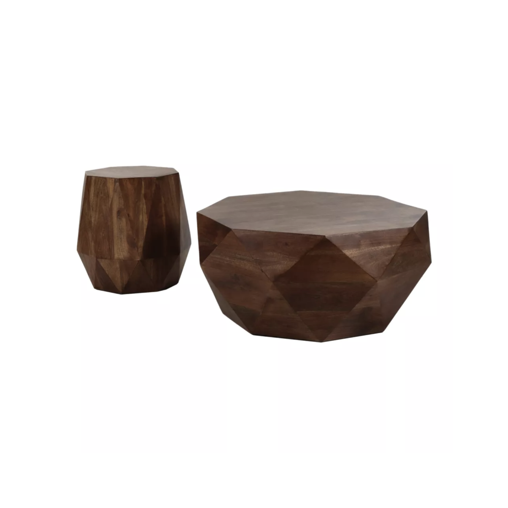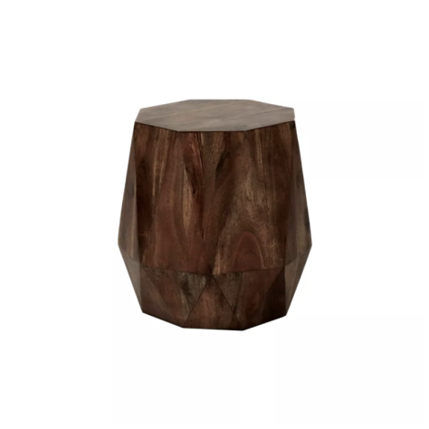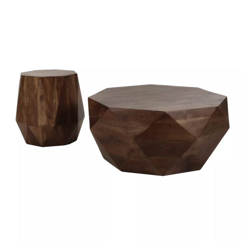 Pièce contemporaine, allure chic, originale et design. Plateau plat et côtés facettés. Cette table est réalisée en bois de manguier.