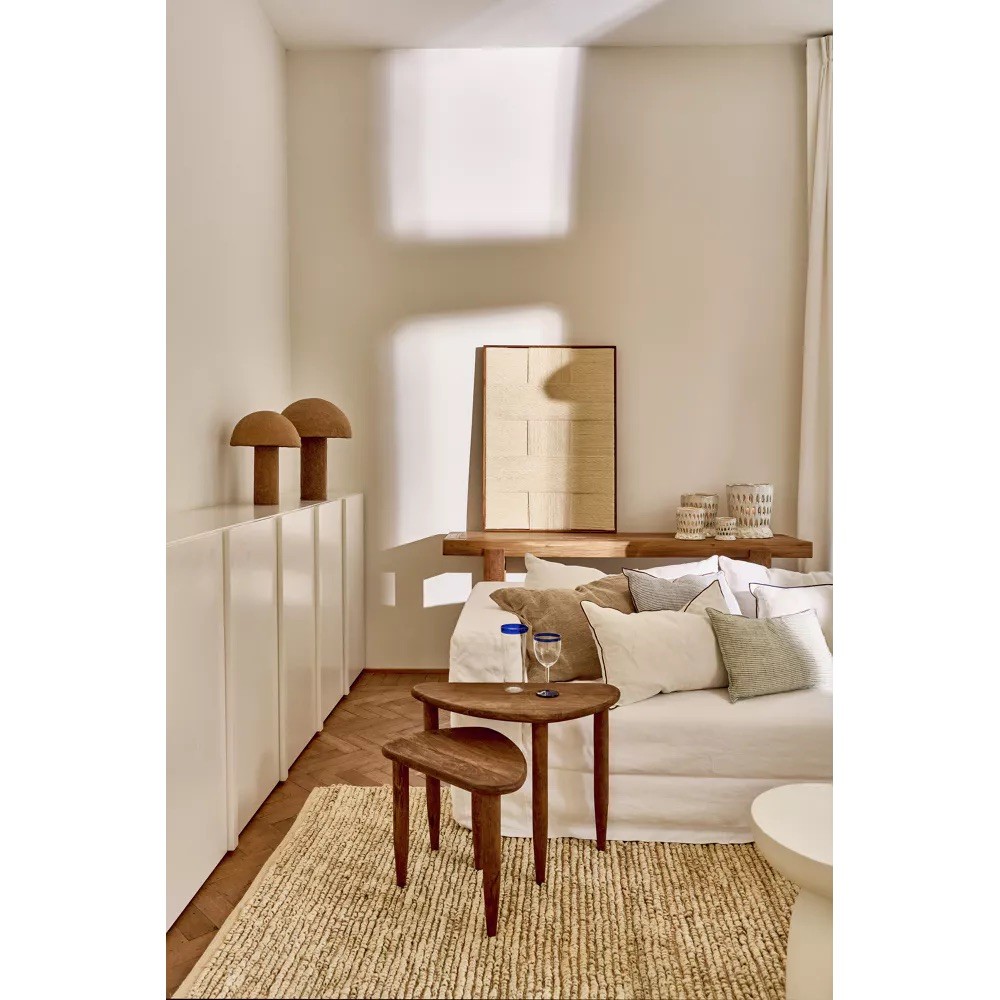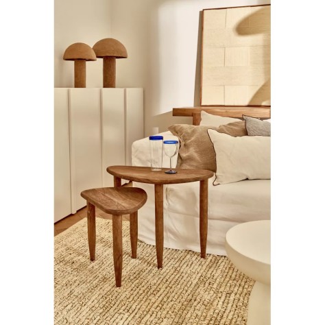 Duo de tables gigones en bois de manguier, au design organique, à utiiliser ensemble ou séparément.