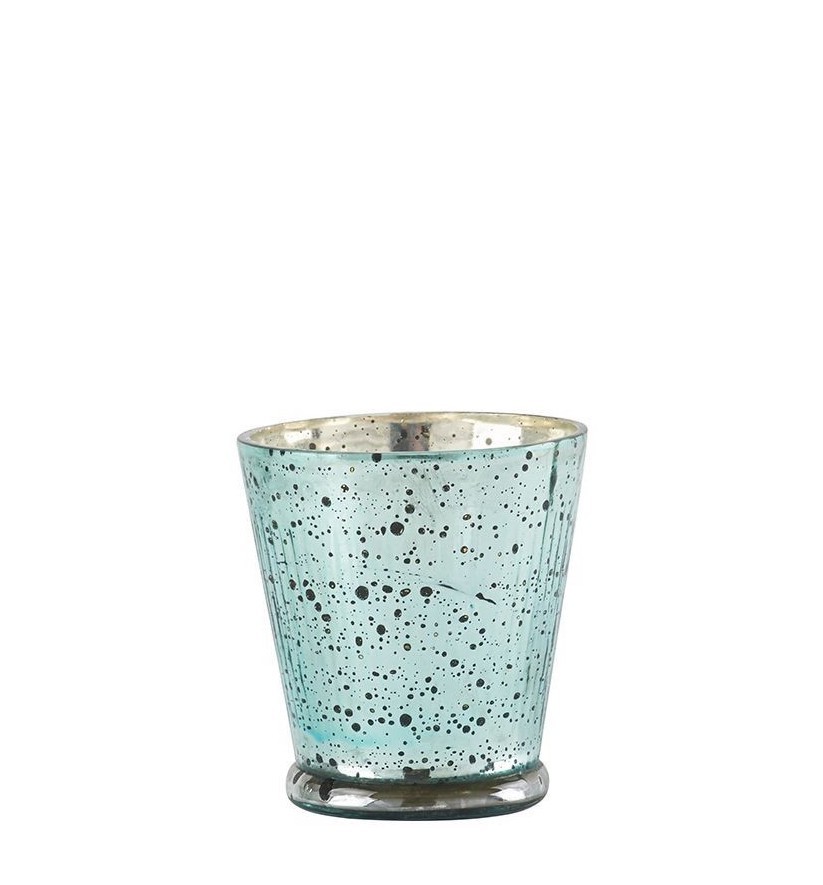 Photophore en verre mercurisé pour bougie chauffe-plat. Très bel effet de transparence lorsque la bougie se consumme. Parfait à plusieurs surun joli plateau que l'on vous suggère plus bas.