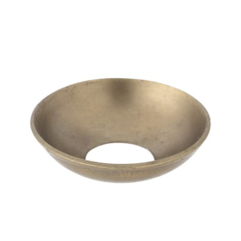 Voici une manchette à bougeoir, ou bobèche, en métal à l'aspect laitonné. Sa forme de coupelle évasée avec une finition vieillie est conçue pour se placer à la base de la bougie. Cet accessoire pratique et élégant recueille la cire fondue, protégeant ainsi vos bougeoirs et vos meubles.
