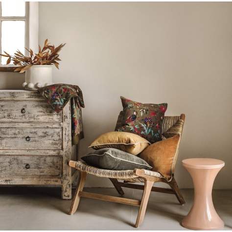 Birdy est l'imprimé phare de la jolie marque de linge de maison Haomy. Il est devenu un grand classique et réchauffe n'importe quelle pièce dans laquelle il se trouve. Son velours de coton et ses motifs chatoyants le rende doux et fort à la fois. Collectionnez-les et variez les couleurs selon vos humeurs. Birdy s'accorde parfaitement avec la ligne Delhi et est décliné en coussins 45x45 cm ou 40x60 cm.