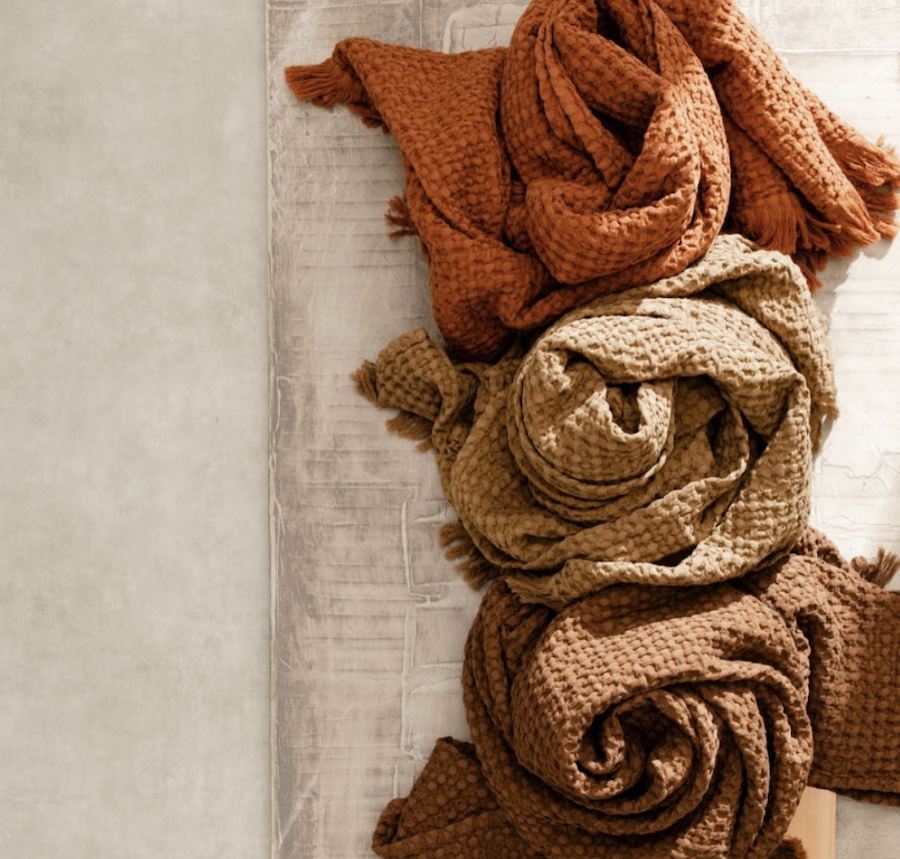 Effet nid d'abeille et finition franges
