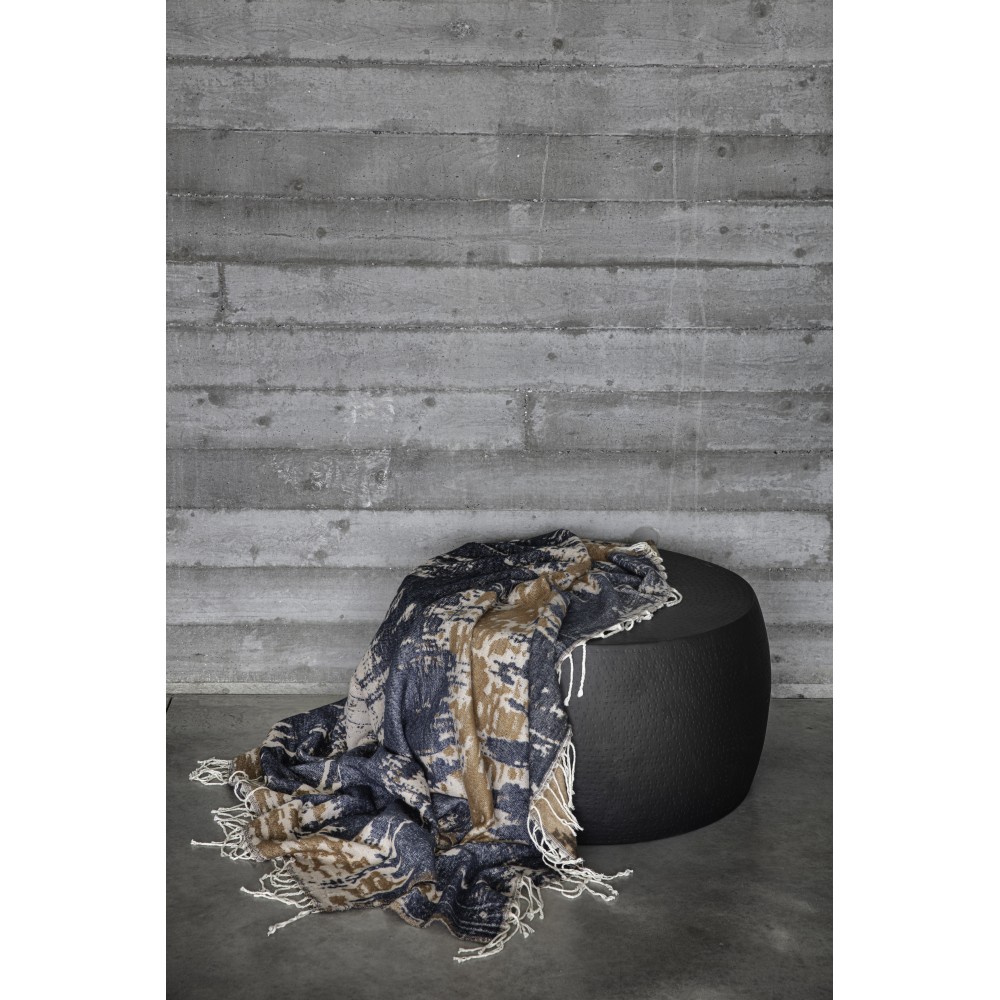 Ce magnifique plaid Burrasca tissé à la main, est fait de fibre acrylique douce et se distingue par son motif spécial: des taches de couleur cannelle sur un fond bleu foncé avec du blanc. Ce plaid est vraiment un chef-d'œuvre de sophistication. Il est incroyablement doux.
