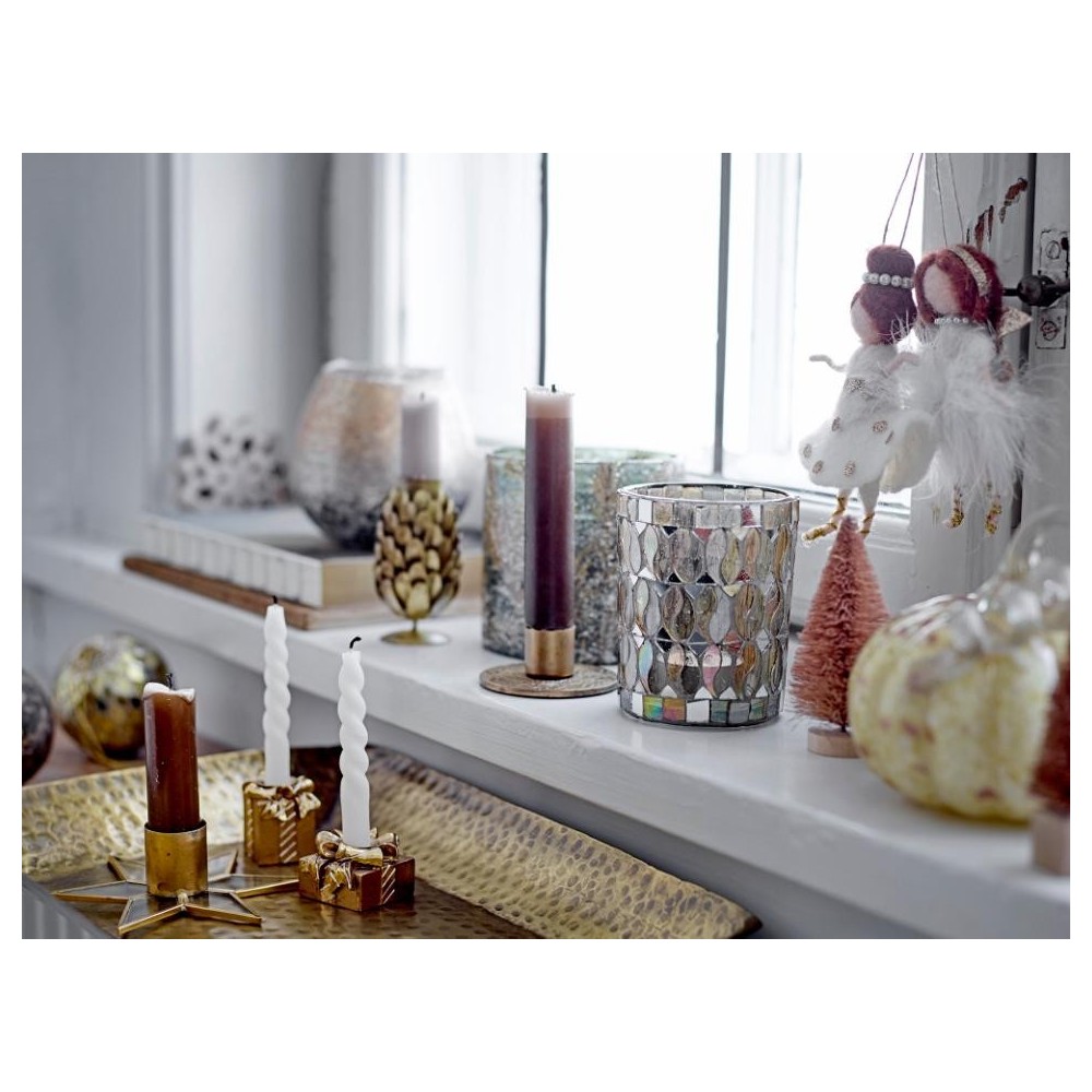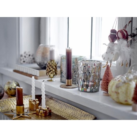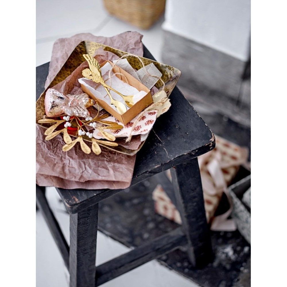 Plateau décoratif en laiton au style magnifiquement gaufré. Mettez-y des ornements, des bougies et des pommes de pin pour une authentique expression de Noël.