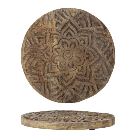 Plateau gravé fait de bois de manguier laqué. Les nombreuses sculptures font du plateau un bel élément décoratif qui peut être idéalement orné de bougeoirs et de petites vases.