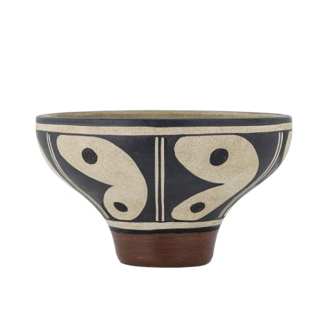 Affichez un style bohème et authentique avec ce grand bol en terre cuite. Cette poterie au look artisanal séduit par ses tons chauds et ses motifs graphiques noir et crème. Idéal comme vide-poche dans une entrée, centre de table sur un buffet ou cache-pot original, cet objet déco unique habillera vos meubles avec caractère. Pour usage décoratif uniquement.