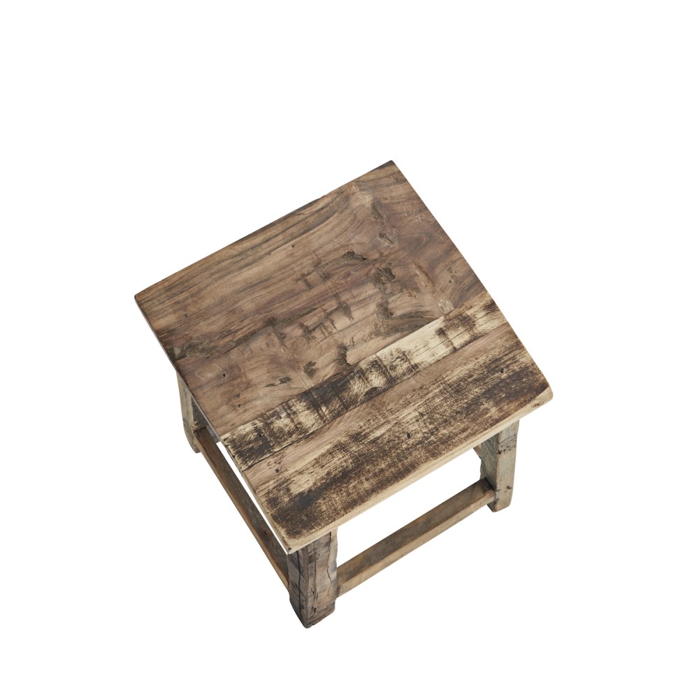 Le bois utilisé pour ce petit tabouret provenait auparavant d'une construction en Inde.
