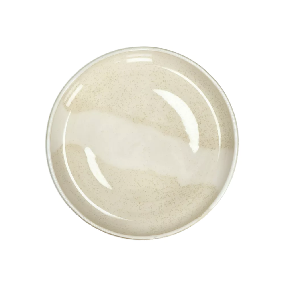 La vaisselle en porcelaine Nougat se compose de 4 bols à bords arrondis et surélevés. Elle est confectionnée grâce à deux types d’émaux réactifs. Les deux émaux sont appliqués manuellement au pinceau. Chaque pièce est donc absolument unique, à la manière d'une oeuvre d'art.