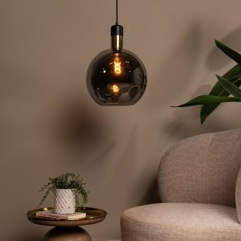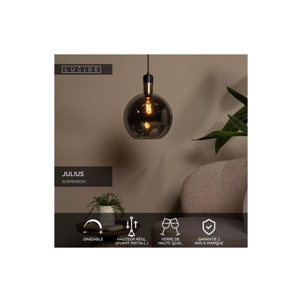 Imposez un style fort avec la suspension Julius Ø40cm, un globe généreux en verre fumé qui joue avec les reflets pour un effet théâtral et contemporain.