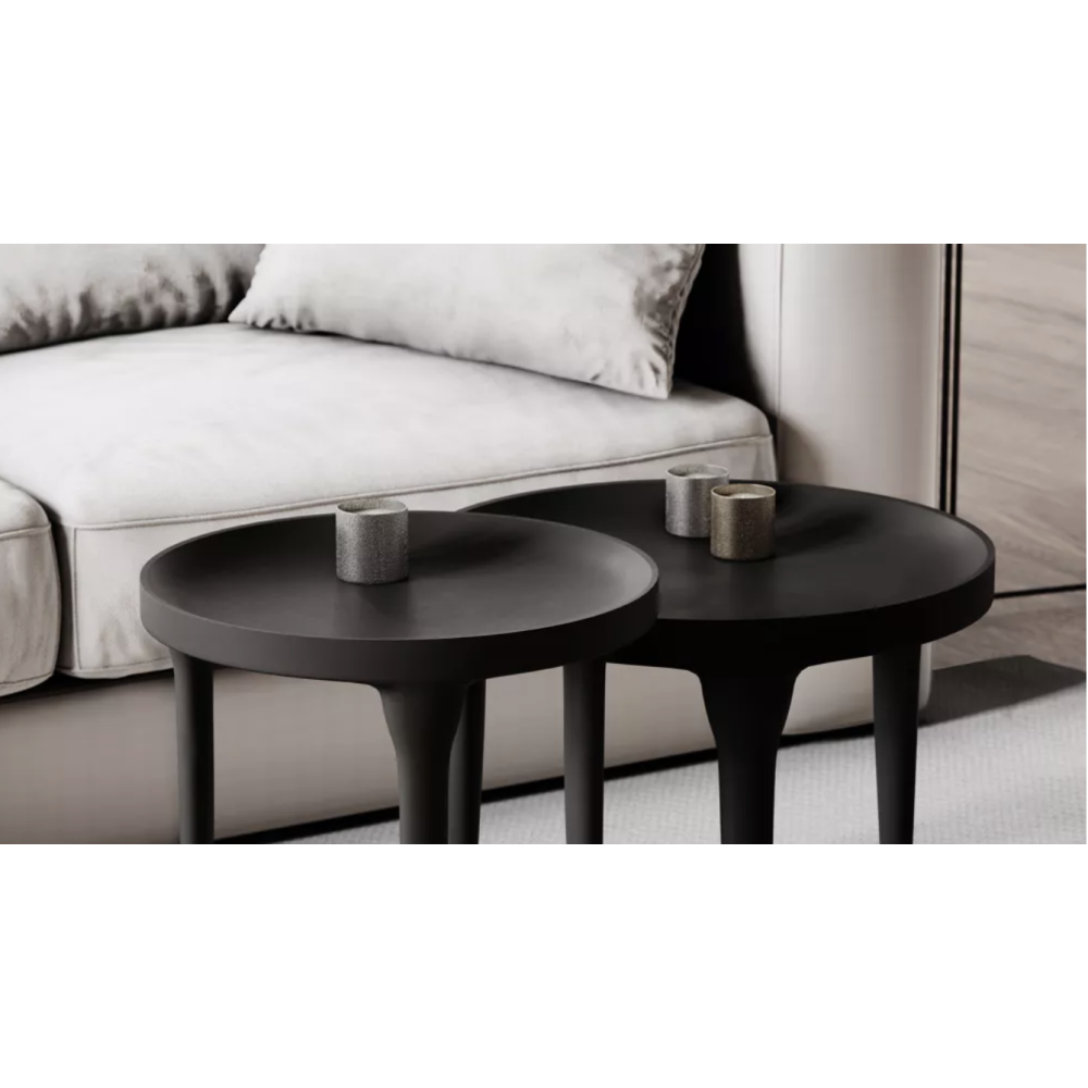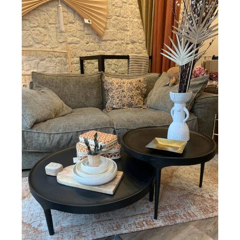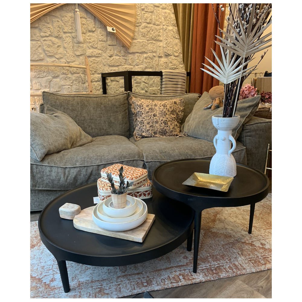Vous aimez les tables d'appoint d'aspect naturel et organique, mais avez-vous peur que le bois soit trop sensible? Alors la collection de tables d'appoint Trip est faite pour vous ! Les trois tables en aluminium noir mat de différentes hauteurs et largeurs peuvent être placées à part ou ensemble comme une seule grande unité pour un effet maximum. En plus de cette petite table d'appoint d'un diamètre de 80 cm, il y en a aussi une de 40 cm et une de 60 cm.