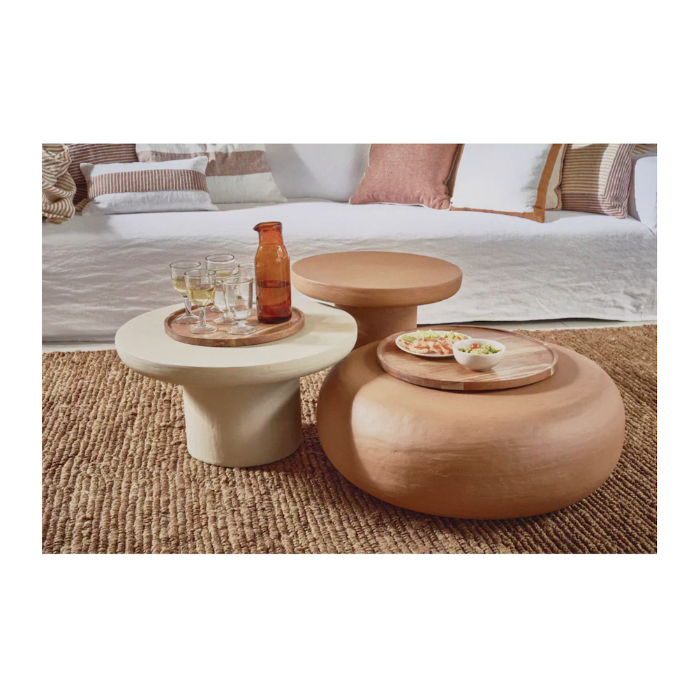 Avec leurs formes rondes et harmonieuses, les tables Pretoria vont vite s’imposer comme des indispensables de votre salon. Recouvertes d’un enduit à la chaux à l’effet texturé unique, les tables Pretoria sont disponibles en plusieurs tailles, plusieurs formes et plusieurs couleurs. Vous pouvez les utiliser seules comme bout de canapé, ou à plusieurs dans votre salon de manière à créer un joli jeu de hauteurs.