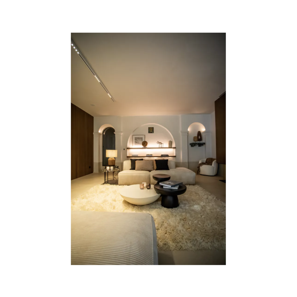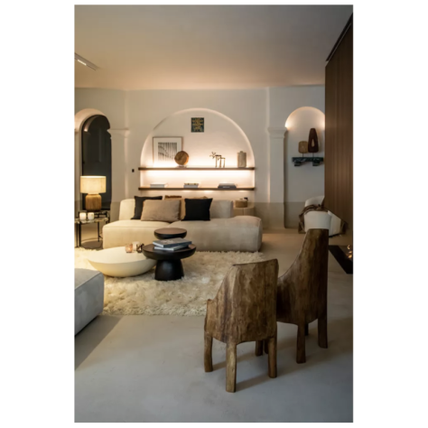 Pièce sculpturale, douce et minérale, la table basse PRETORIA est plus qu'un meuble : c'est un volume qui ancre l'espace avec une élégance et une simplicité rares. Sa forme de demi-sphère, d'un diamètre généreux de 85 cm, offre une belle surface tout en conservant une grande pureté de ligne. Son profil très bas (25 cm de hauteur) invite à un mode de vie plus détendu, inspiré des intérieurs méditerranéens ou japonais. Toute sa singularité réside dans sa finition en enduit à la chaux. Cette matière naturelle lui confère un aspect mat, velouté et légèrement texturé. Appliqué de façon artisanale, ce revêtement accroche la lumière avec une douceur incomparable, donnant à la table une âme authentique et vivante. C'est une pièce qui invite au toucher autant qu'au regard.