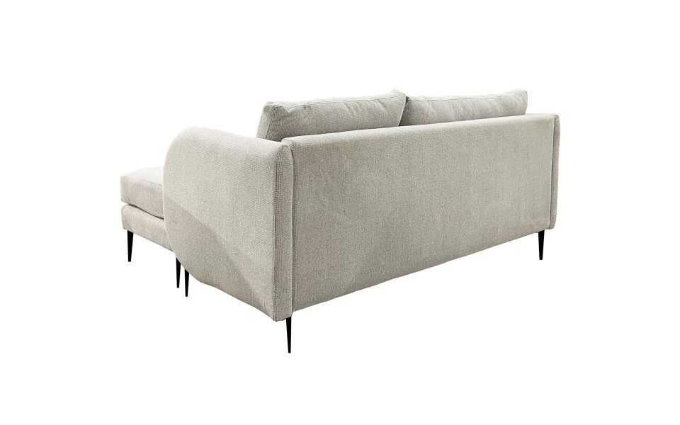 Ce canapé présente l'avantage d'être réversible. Il est composé d’un canapé et d’un pouf : pouf, assises et dossiers sont repositionnables à gauche ou à droite.