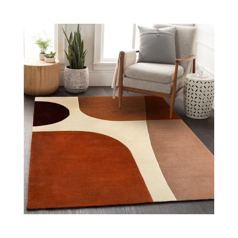 Une composition audacieuse, un hommage à l'art abstrait. Le tapis Lipari est une pièce de caractère qui transformera votre sol en une véritable toile de maître. Son design est un jeu de grandes formes géométriques aux contours arrondis qui s'agencent et se superposent avec une harmonie parfaite. Sa palette de couleurs chaudes et terreuses, allant du terracotta au bordeaux, évoque des paysages volcaniques et des couchers de soleil méditerranéens. Confectionné en 100% pure laine et d'une densité exceptionnelle (3700 g/m²), il offre un velours ras, doux et incroyablement confortable sous les pieds.