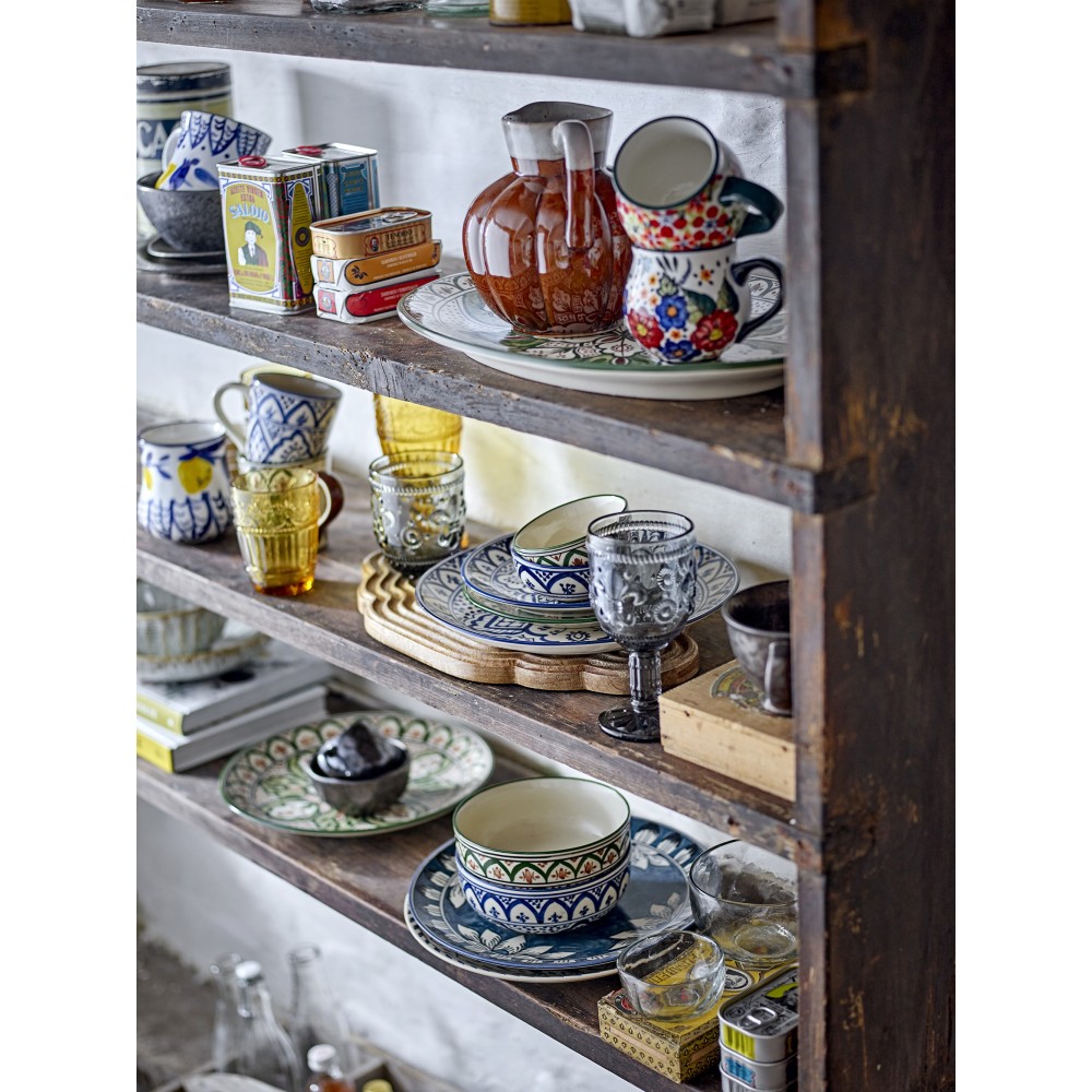 Ensemble de deux tasses délicieuseusement vintage, magnifiquement décorées avec leurs propres motifs floraux colorés et vibrants en bleu, rouge, jaune et vert. Ces tasses apportent de la joie à table et sont un bel ajout à toute décoration de cuisine et à toute étagère à tasses. Chaque tasse sera unique en raison de la nature de l'émail et de la technique artisanale, et de petites variations peuvent survenir.