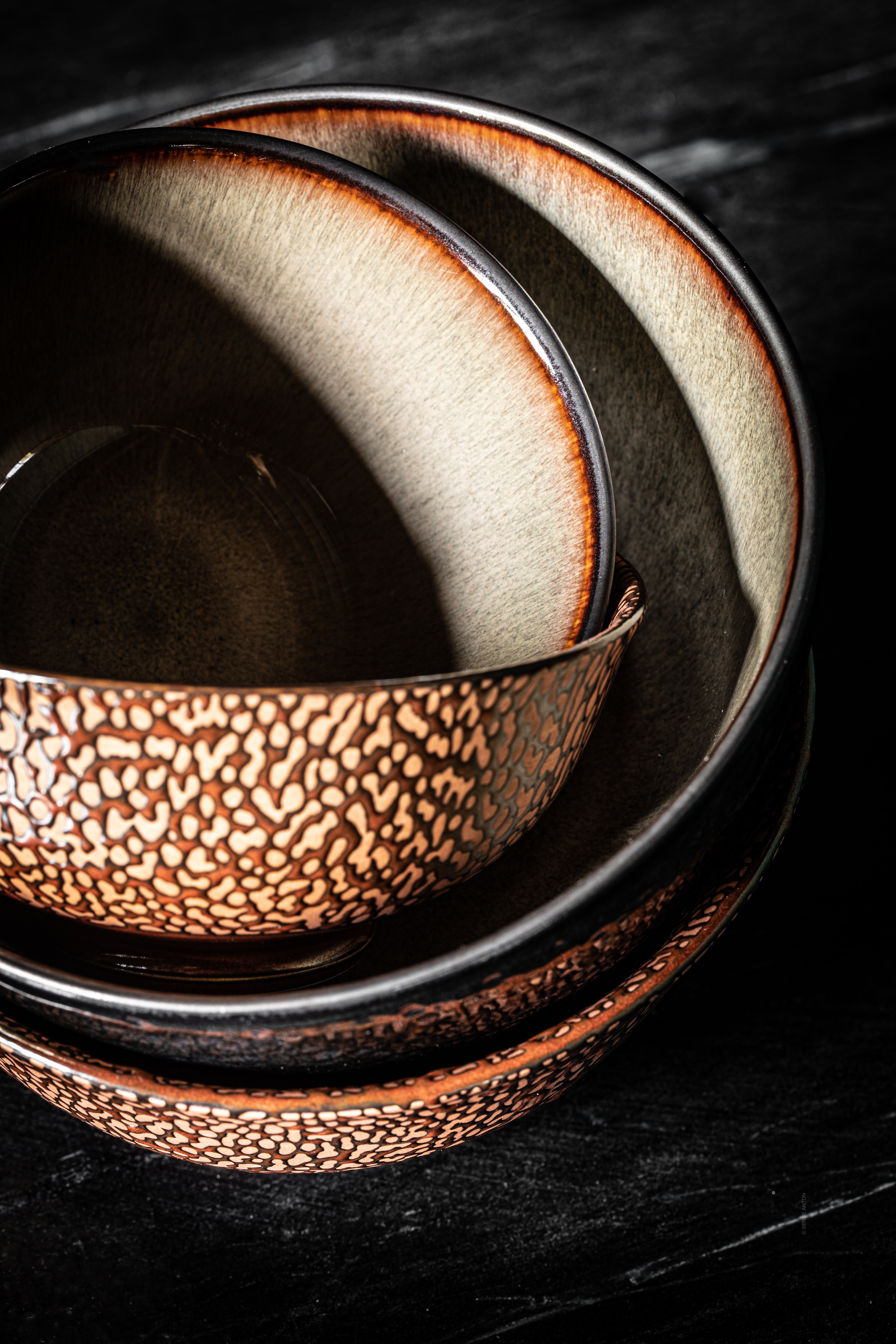 La collection de bols Harvest porte bien son nom, puisqu’elle s’inspire de la saison des récoltes. Ces bols sont recouverts d’un émail réactif dont les teintes évoquent les paysages d’automne.
