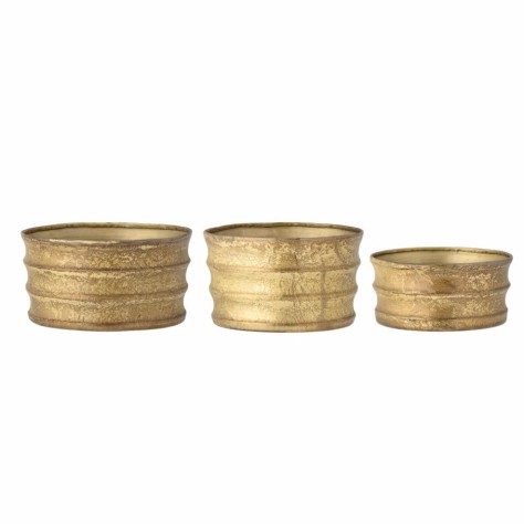 Les pots de fleurs Lucilla de Bloomingville constituent un ensemble de 3 jolis pots de fleurs au style rustique doré. Placez-les ensemble ou avec d'autres pots de fleurs pour un style moderne.